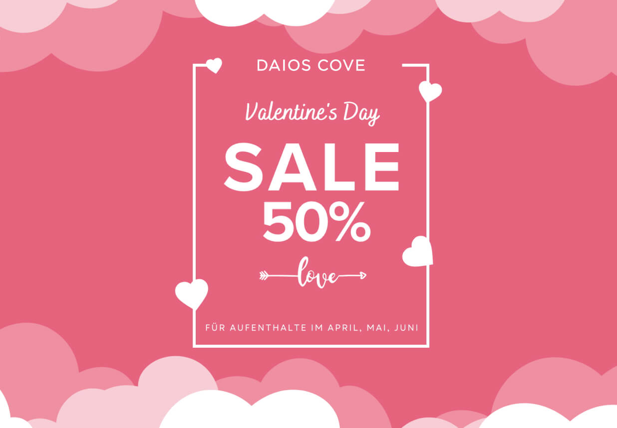 Das Beste: Bei Buchung vom 12. bis 14.02. erhaltet Ihr 50 % Valentinstagsrabatt auf den Hotelpreis.